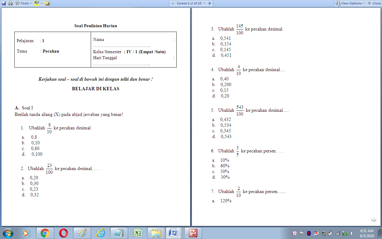 Soal Ulangan Harian Matematika Kelas 4 Sd Pecahan Antapedia Com from 1.bp.blogspot.com Maybe you would like to learn more about one of these? We did not find results for: Check spelling or type a new query.